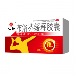 布洛芬緩釋膠囊(22粒) | 仁和 | 0.3克/粒*11粒/板*2板/盒*300盒/箱 | 國藥準字H20093691 |
