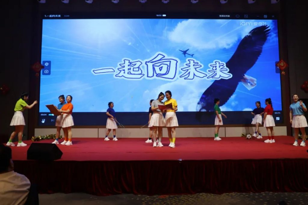 看!那是中進(jìn)機(jī)關(guān)人員帶來的舞蹈《一起向未來》,舞臺(tái)上十一種顏色的衣服代表每個(gè)人不同的狀態(tài),有激情、有清爽、有善良、有溫柔、有活力等,這都是中進(jìn)色彩,中進(jìn)因?yàn)槟銈兌篮谩?/p>