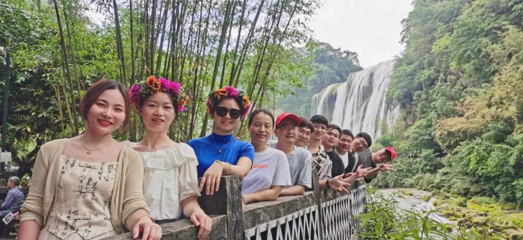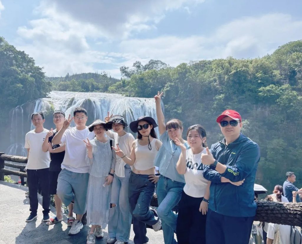 最后一天,我們的足跡留在了壯觀的黃果樹瀑布前,作為亞洲最大的瀑布,其景觀震撼人心,小學課本里對黃果樹瀑布的描述,讓每個人心中都住著一個黃果樹瀑布。黃果樹下,壯觀秀麗;水簾洞旁,水聲轟鳴,仿佛是大自然對我們團隊精神的最高贊歌。那一刻,每個人的心都被這份雄渾壯麗所觸動,更加堅定了我們作為團隊一員,面對工作挑戰也要勇往直前的決心。