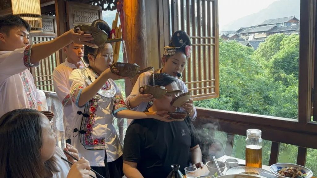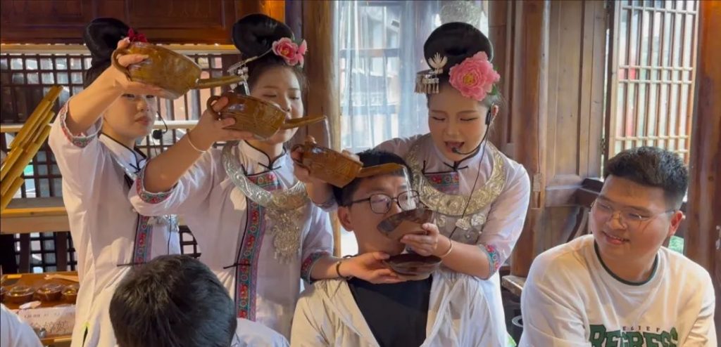 貴州,這片古老而神秘的土地,以其獨特的自然風光和豐富的民族文化,成為了我們團建活動的理想之地。旅程首日,我們步入了西江千戶苗寨,苗寨中,銀飾叮咚,苗家姑娘的高山流水敬酒歡樂聲與苗族長桌宴上的美食相互交織,讓我們深切感受到了苗族文化的獨特魅力與熱情好客。夜幕降臨時,燈火闌珊,整個苗寨宛如星光璀璨的海洋,映照出大家臉上洋溢的幸福笑容,獨特的苗族服飾更吸引了我們紛紛穿戴上身拍照打卡。