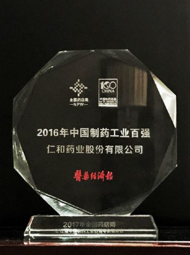 同時(shí),由中國(guó)醫(yī)藥經(jīng)濟(jì)報(bào)主辦的“2016年度中國(guó)制藥工業(yè)百?gòu)?qiáng)”榜單進(jìn)行了發(fā)布,仁和藥業(yè)股份有限公司獲此殊榮。