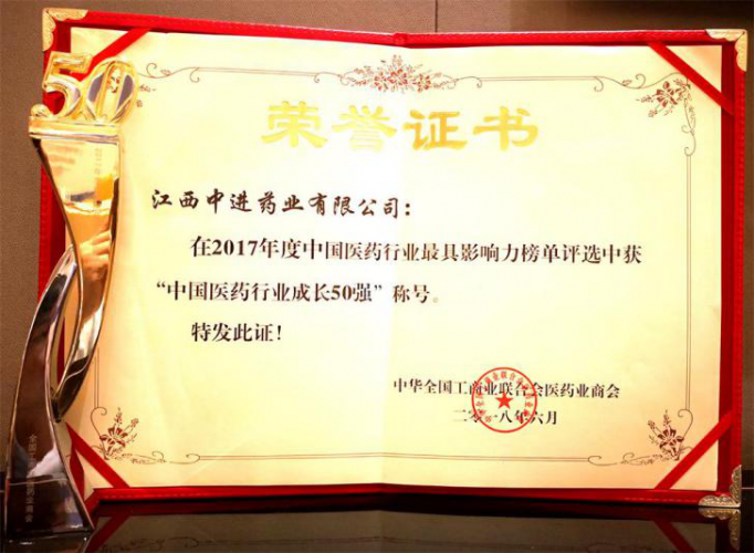 中進(jìn)藥業(yè)榮獲2017年度中國(guó)醫(yī)藥行業(yè)“中國(guó)醫(yī)藥行業(yè)成長(zhǎng)50強(qiáng)”
