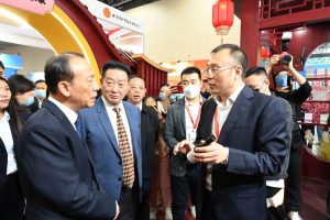 全國政協(xié)委員,民建中央委員?,仁和股份董事局主席 楊文龍先生與宜春市市委書記于秀明前來參觀仁和本草酵素展臺,仁和股份大健康經營委員會常務副主任 副總裁 彭永振先生向兩位領導介紹仁和本草酵素的特色和優(yōu)勢。