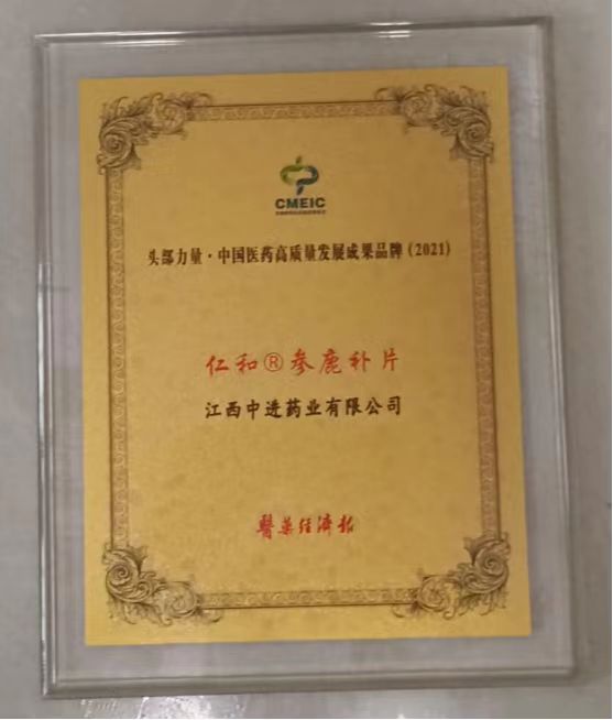 喜訊!中進(jìn)藥業(yè)、參鹿補(bǔ)片分別被評(píng)為頭部力量·中國(guó)醫(yī)藥高質(zhì)量發(fā)展成果企業(yè)和成果品牌