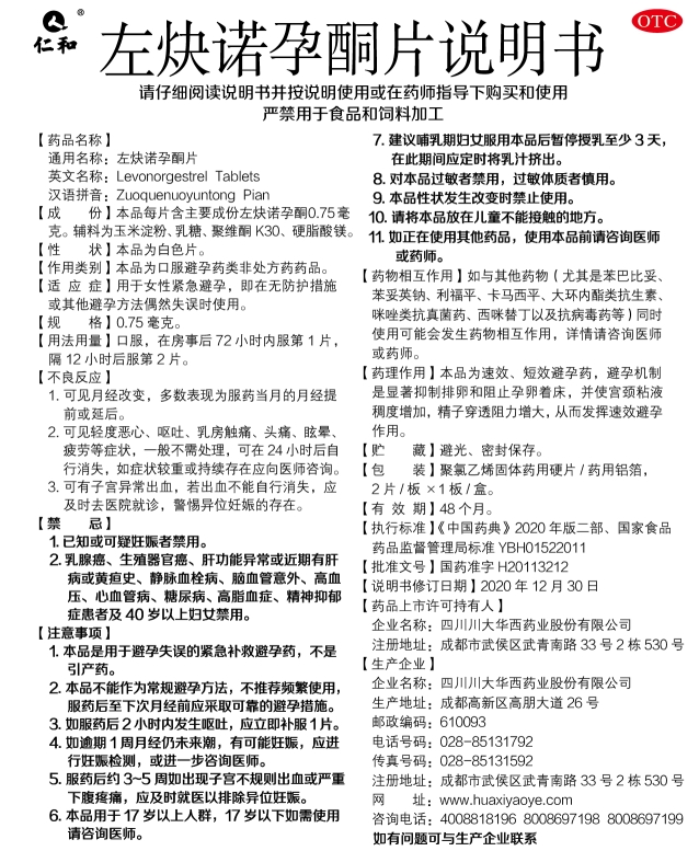 用于女性緊急避孕,即在無防護措施或其他避孕方式偶然失誤時使用。